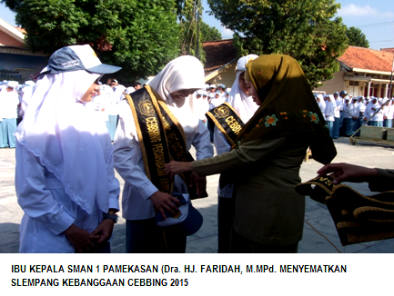 Alhamdulillah sekolah kita bisa mempertahankan tradisi kejuaraan ini, ilmu atau talenta yang nanda miliki silahkan ditularkan pada teman atau adik kelas sehingga ke depan gelar Cebing tetap dapat dipertahankan oleh siswa siswi SMANSA Ujar kasek disela- sela penyematan