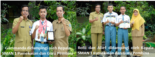 Kompetisi Sains Nasional Tingkat Provinsi (KSN-P) jenjang SMA Tahun 2020, sudah dilaksanakan dari tanggal 10 s.d 14 Agustus Tahun 2020 di 34 provinsi. Berdasarkan hasil penilaian oleh tim juri masing-masing bidang, tiga peserta didik SMAN 1 Pamekasan lolos menuju ke KSN, yaitu di bidang Geografi atas nama Gammanda Adhny El Zamzamy Latief, dan di bidang Fisika, yaitu atas nama Rofii dan Alief Hisyam Al Hasany MR. Kompetisi KSN dilaksanakan secara virtual pada tanggal 14 s.d 16 Oktober 2020. Alhamdulillah, Gammanda Adhny El Zamzamy Latief berhasil menyabet medali emas di bidang Geografi. Selain itu Gammanda Adhny El Zamzamy Latief berhasil meraih dua penghargaan, yaitu test tertulis terbaik dan test laboratorium terbaik. Dengan diraihnya juara KSN, berarti Gammanda Adhny El Zamzamy Latief berhasil maju ke olimpiade tingkat dunia. Kepala SMAN 1 Pamekasan, Bapak Moh. Arifin dan seluruh Tenaga Kependidikan SMAN 1 Pamekasan, sangat mendukung keberhasilan peserta didik SMAN 1 Pamekasan dalam meraih prestasi di berbagai ajang lomba, baik akademik maupun non-akademik, demikian juga pada pelaksanaan KSN mulai dari pelaksanaan di tingkat kabupaten, provinsi, maupun tingkat nasional. Mohon doa restunya, semoga Gammanda Adhny El Zamzamy Latief berhasil menyabet medali emas di olimpiade tingkat dunia